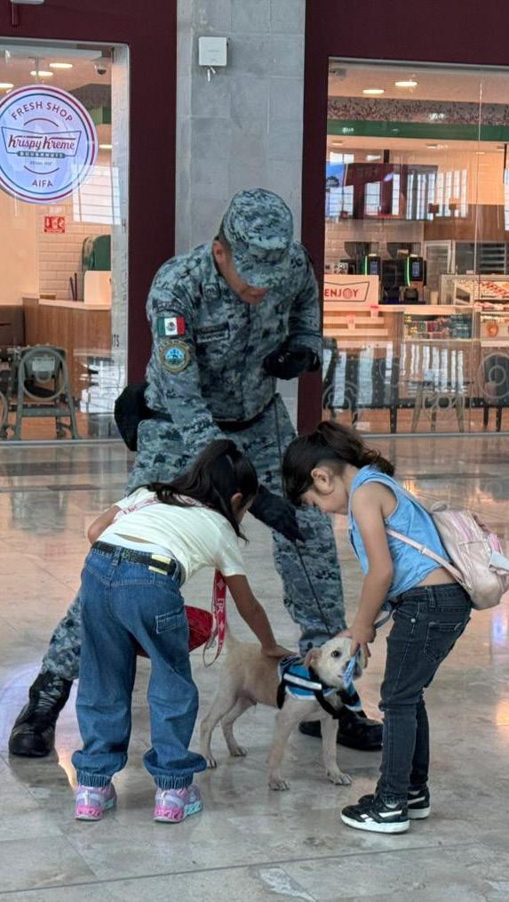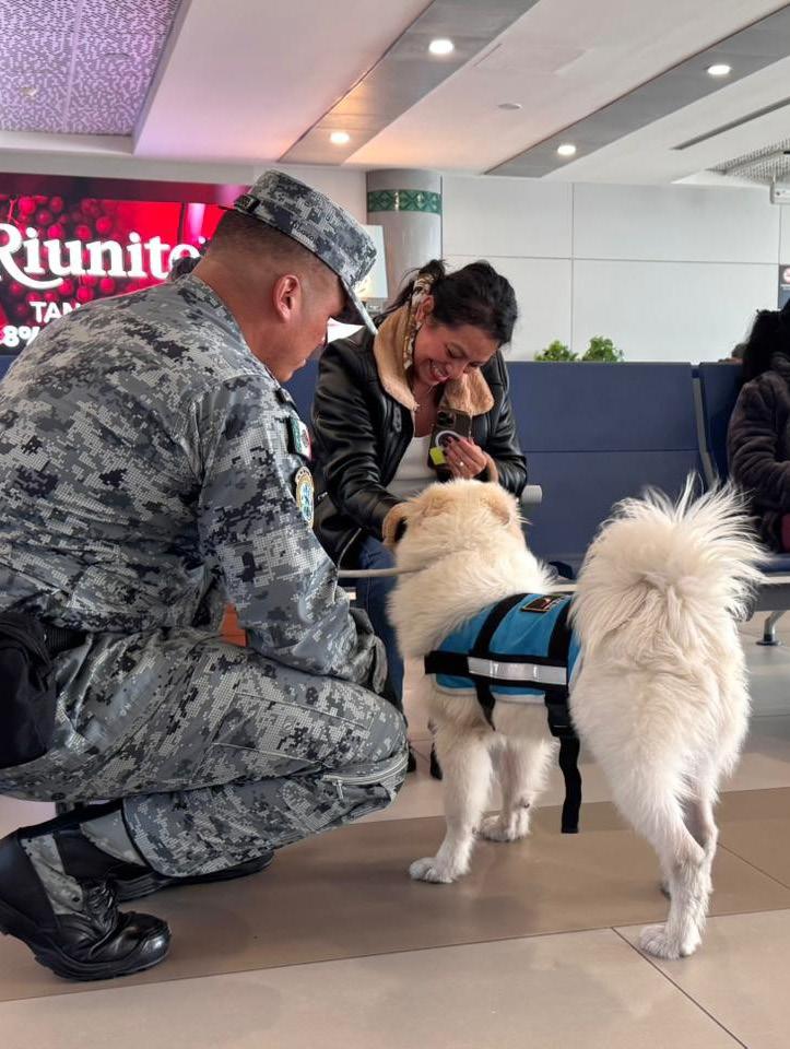Perros de apoyo emocional llegan por primera vez al Aeropuerto Internacional Felipe Ángeles (AIFA), en el Estado de México. Se trata de la primera terminal aérea a nivel nacional en la que se implementa el programa, que está a cargo de la Guardia Nacional.