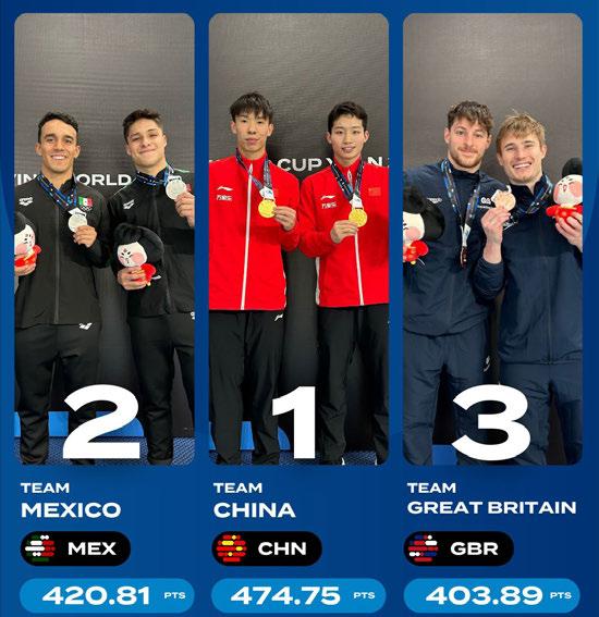 Osmar Olvera, ahora en pareja con Juan Manuel Celaya, logró medalla de plata en el trampolín de 3 metros sincronizados en la Súper final Copa del Mundo de Clavados que se desarrolla en Xi’an, China.