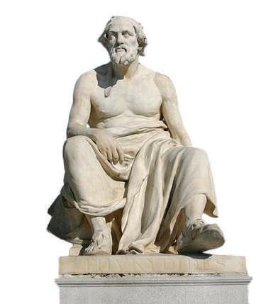 Tucídides fue un historiador en la Grecia antigua que narró la guerra del Peloponeso (siglo V A.C.), con realismo y se alejó del uso de los recursos mitológicos para explicar las causas y los efectos de los conflictos armados. En ocho tomos, describió la guerra como un acto humano, cruel, estigmatizado por la ambición, la arrogancia, la codicia, la pasión y, por tanto, la ceguera estratégica. En algunos casos son fáciles expresiones concomitantes con su visible incultura.