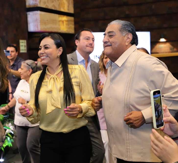 La funcionaria federal estuvo escoltada por el gobernador del estado Samuel García. Estuvieron sonrientes hasta que García tuvo que aclarar que no está promoviendo ningún cambio en materia electoral en Nuevo León para favorecer las aspiraciones de su esposa Mariana Rodríguez a la gubernatura. Y es que se promueve allá que solo