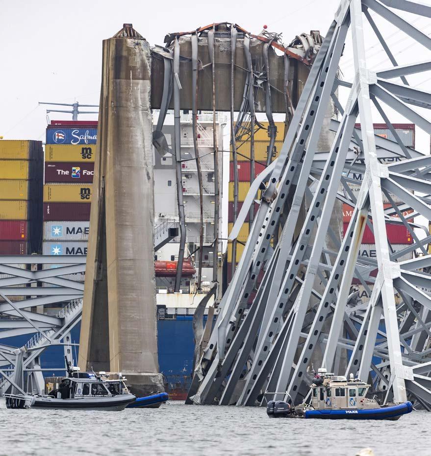 Las personas víctimas del colapso del puente Francis Scott Key de Baltimore son de origen latinoamericano, lo que refleja la importancia de los hispanos en la economía de EU. En la imagen, decenas de autos fabricados en Baltimore y que no podrán ser exportados porque la bahía quedó bloqueada. PAG 17