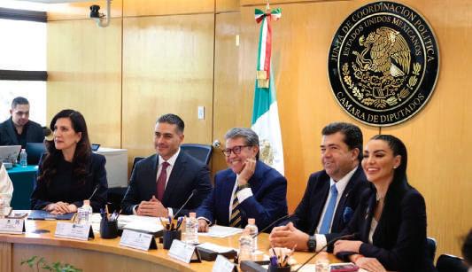 Omar García Harfuch (arriba) estuvo con líderes de las bancadas parlamentarias, en donde ratificó su confianza en que la estrategia de seguridad dará frutos al país. En tanto, la directora de la CFE, Emilia Esther Calleja, habló de los megaproyectos que están en puerta. PAG. 7 y 11