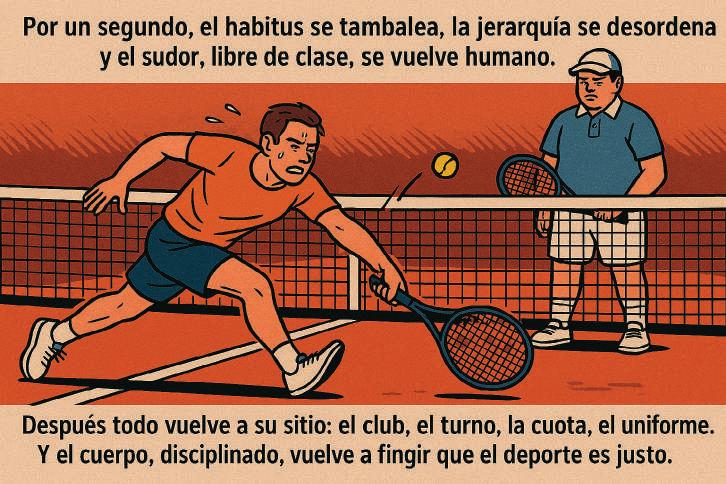 Entonces, por un segundo, el habitus se tambalea, la jerarquía se desordena y el sudor, libre de clase, se vuelve humano.