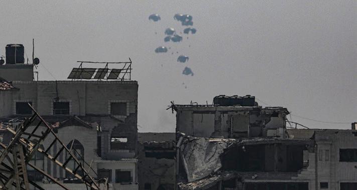 Ayuda humanitaria lanzada desde el aire por el Ejército de los Emiratos Árabes Unidos llega a la parte sur de la ciudad de Gaza; más de 130 palestinos, la mayoría de ellos niños, han muerto por desnutrición en la Franja de Gaza, informó el Ministerio de Salud palestino. A la zona se enviaron 25 toneladas de ayuda humanitaria, tanto por aire como por tierra en 100 camiones cargados con alimento. PAG. 21