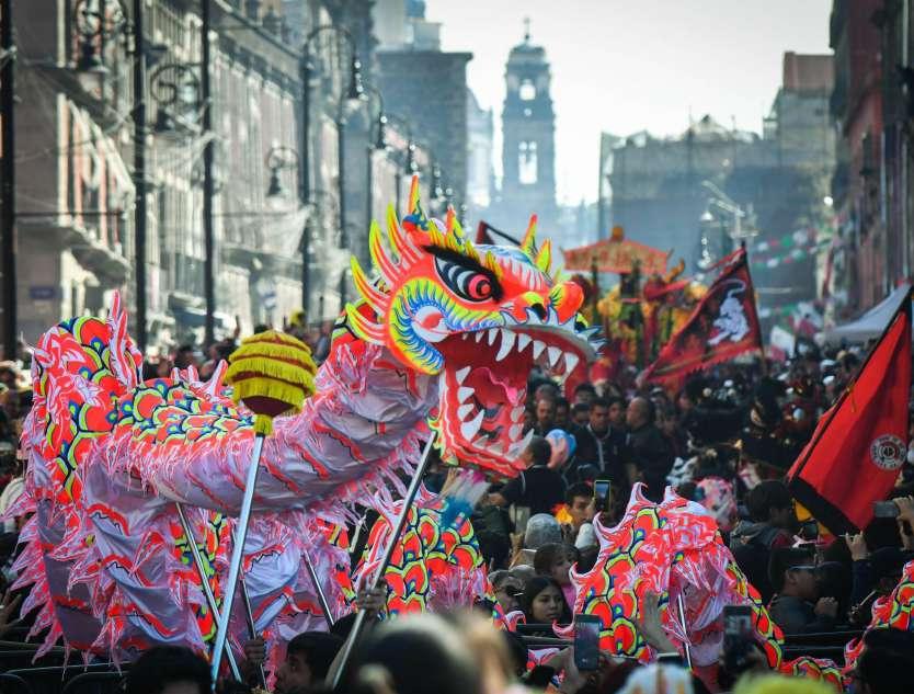 La comunidad china en México celebró este sábado con dragones y leones imperiales en los corredores del Centro Histórico de la Ciudad de México, para dar la bienvenida al Año Nuevo chino, festejo que iniciará oficialmente el 17 de febrero y estará marcado por el Caballo, uno de los 12 animales del zodiaco de esta cultura asiática.
