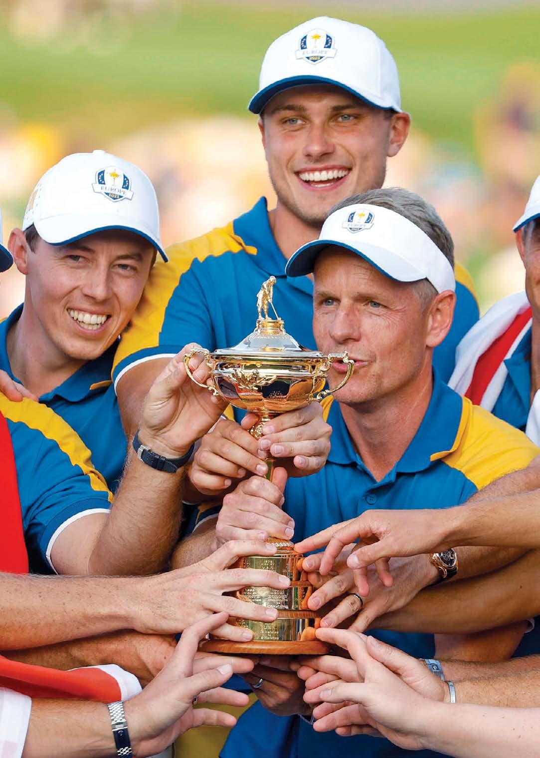 Viejo Continente levantarán la Ryder Cup… MESA DE DORADAS… Quiero pensar que este triunfo y la manera de conseguirlo, por envío los números rojos en la selección para la Presidents Cup, Torneo similar al de la Ryder, en la que se entrega un trofeo al equipo ganador entre Estados Unidos y el resto del mundo, quitando a los europeos.