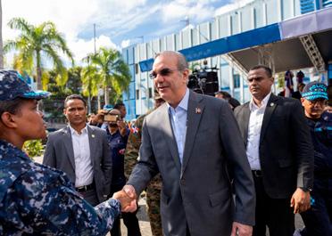 El presidente Luis Abinader saluda a una de las agentes de la Policía.