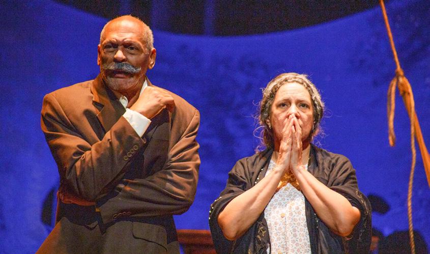 conoce de antemano el rigor que impone la recreación de Macondo, ese mundo –y pueblo chico– inquietante concebido por García Márquez, que en El coronel no tiene quien le escriba, citando siempre el texto de Vargas Llosa, lo dota de sangre, músculos y huesos. Orestes Amador, nominado este año al Premio Soberano por Acroarte por su trabajo en la obra Esperando a Odiseo, se mete en la piel del trágico personaje que deposita sus esperanzas en un gallo que heredó tras la muerte de su hijo. Nadan a la par en las mismas aguas Orestes y Elvira, una actriz que literalmente se bebe sus líneas para cantarlas con la naturalidad y credibilidad interpretati-