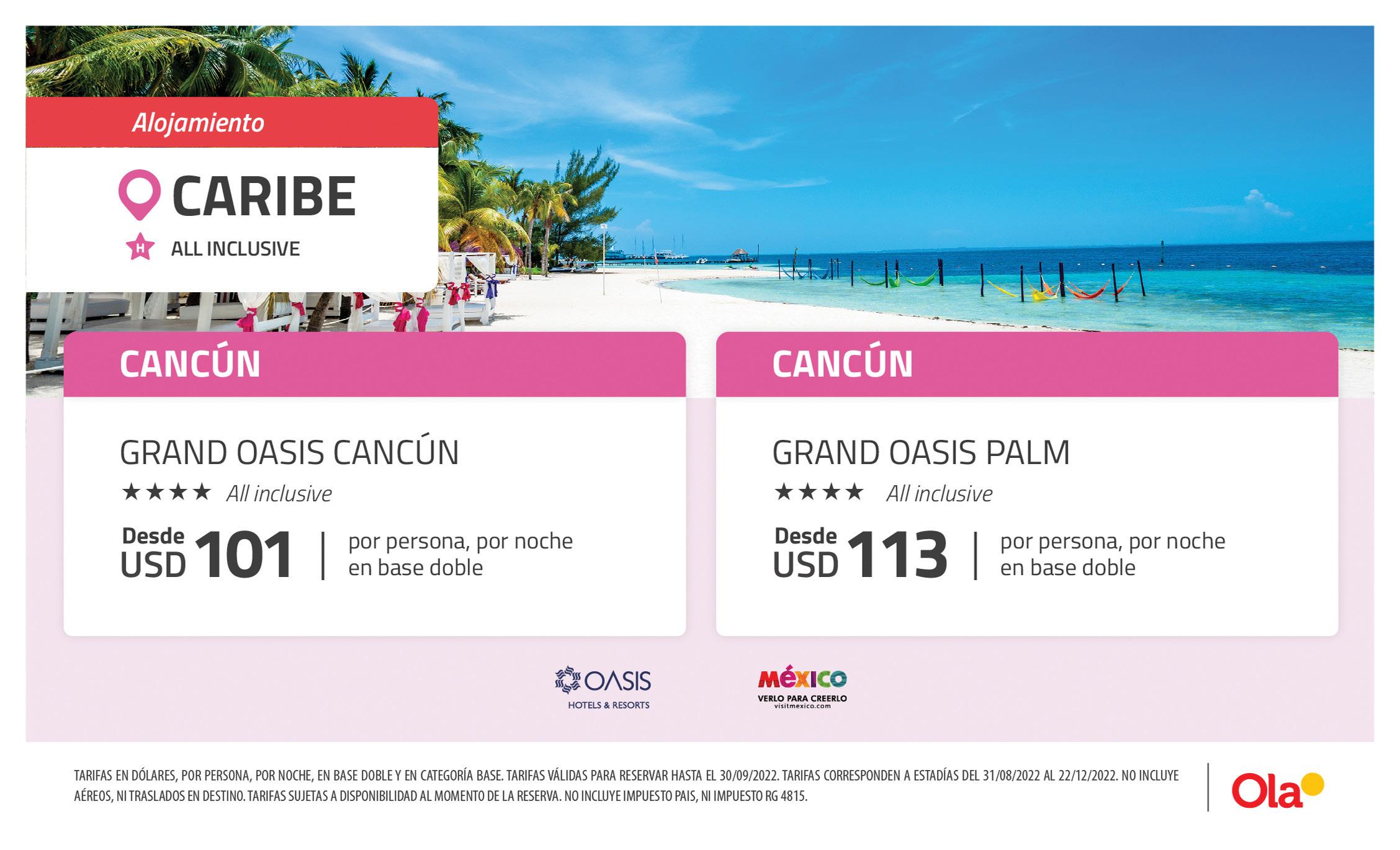 Oasis Hotels & Resorts cuenta con dos complejos ubicados en la zona hotelera de Cancún, Palm y Cancún, que se encuentran ubicados frente a espectaculares playas, con grandes extensiones de arena y clubes de playas. Así lo comunicó Ola.