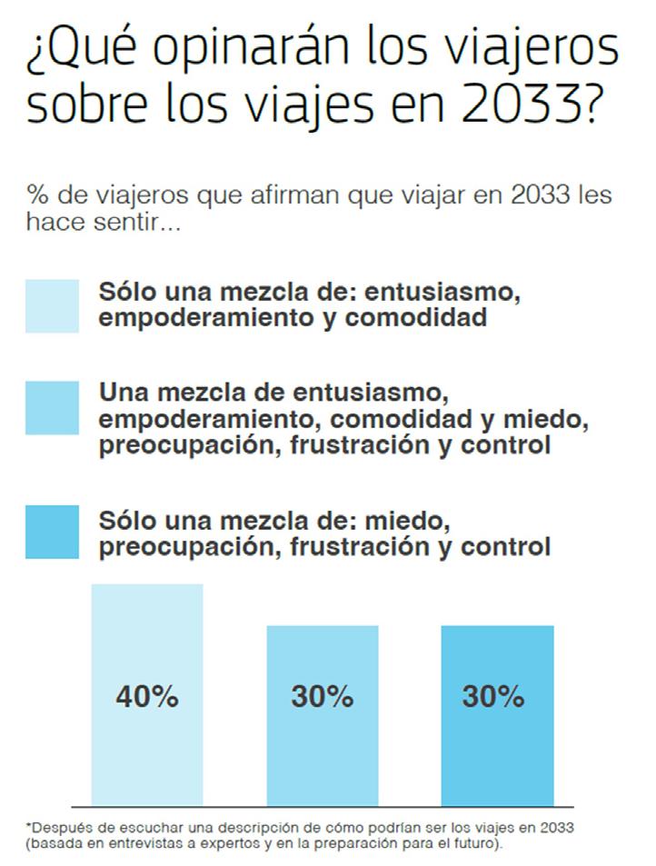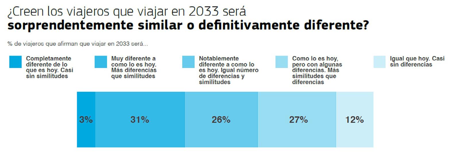 cer a los viajeros las mejores experiencias posibles dentro de 10 años”, detalla el reporte. El trabajo es una investigación en profundidad que implicó hablar “con 22 expertos de diferentes campos, dentro y fuera del sector, después encuestar a 10.345 viajeros de 15 países y, así, recopilar un total de 5,84 millones de datos”.