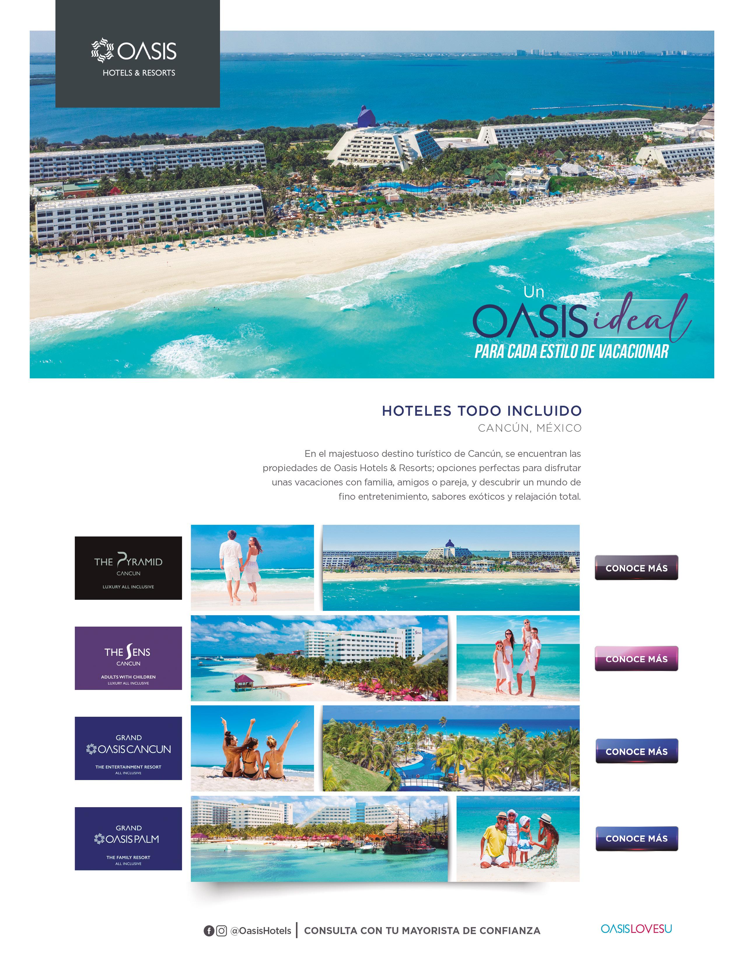 Las propiedades de Oasis Hotels & Resorts en Cancún ofrecen todo lo necesario para el relax y el entretenimiento, además de una amplia oferta gastronómica.OASIS HOTELS & RESORTS Belleza natural y relax en Cancún.
