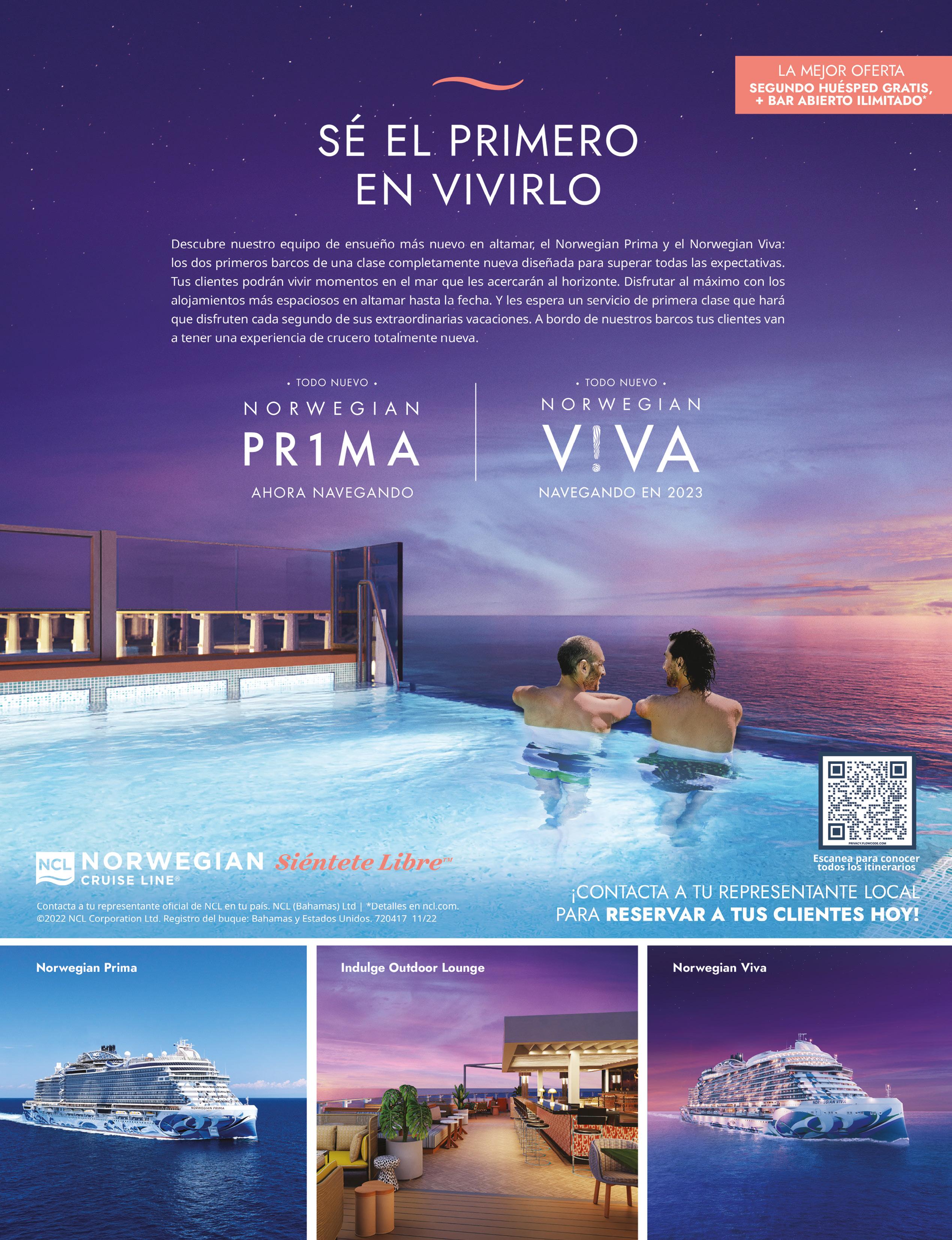 La naviera anunció la llegada del Norwegian Prima a su terminal de cruceros de Miami, donde realizó dos viajes inaugurales, del 11 al 14 y del 14 al 17 de noviembre de 2022, con escala en Great Stirrup Cay, la isla privada de NCL en las Bahamas.