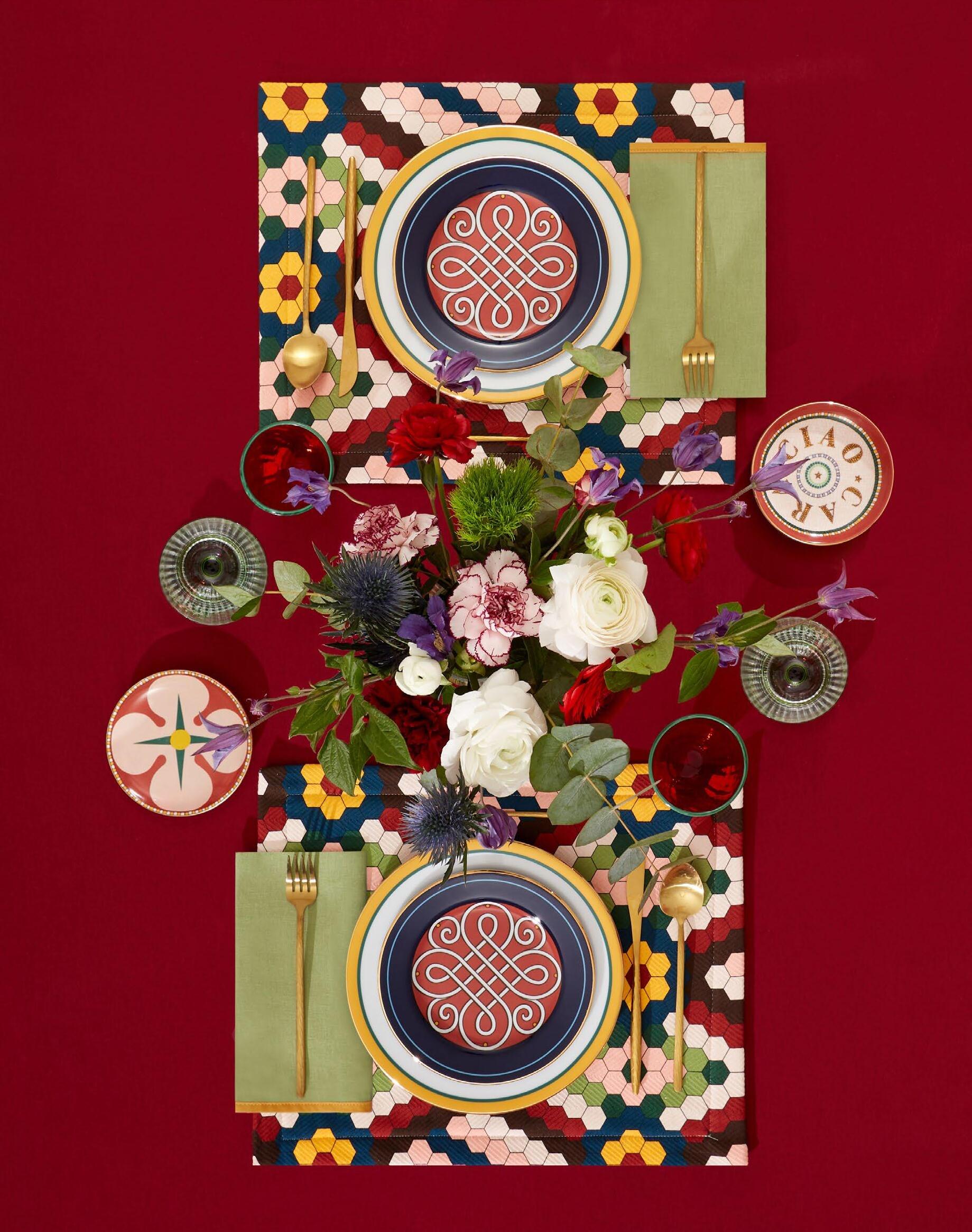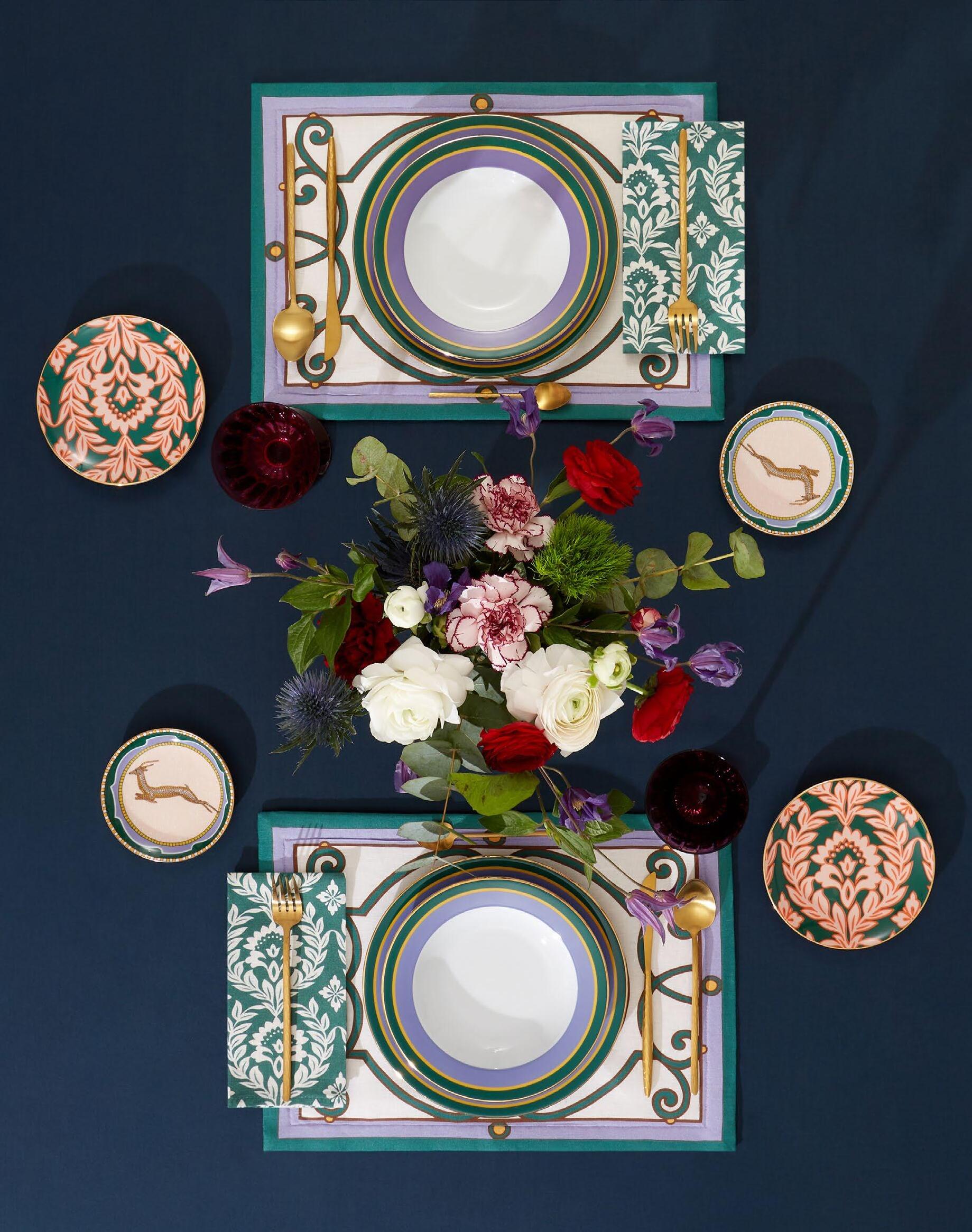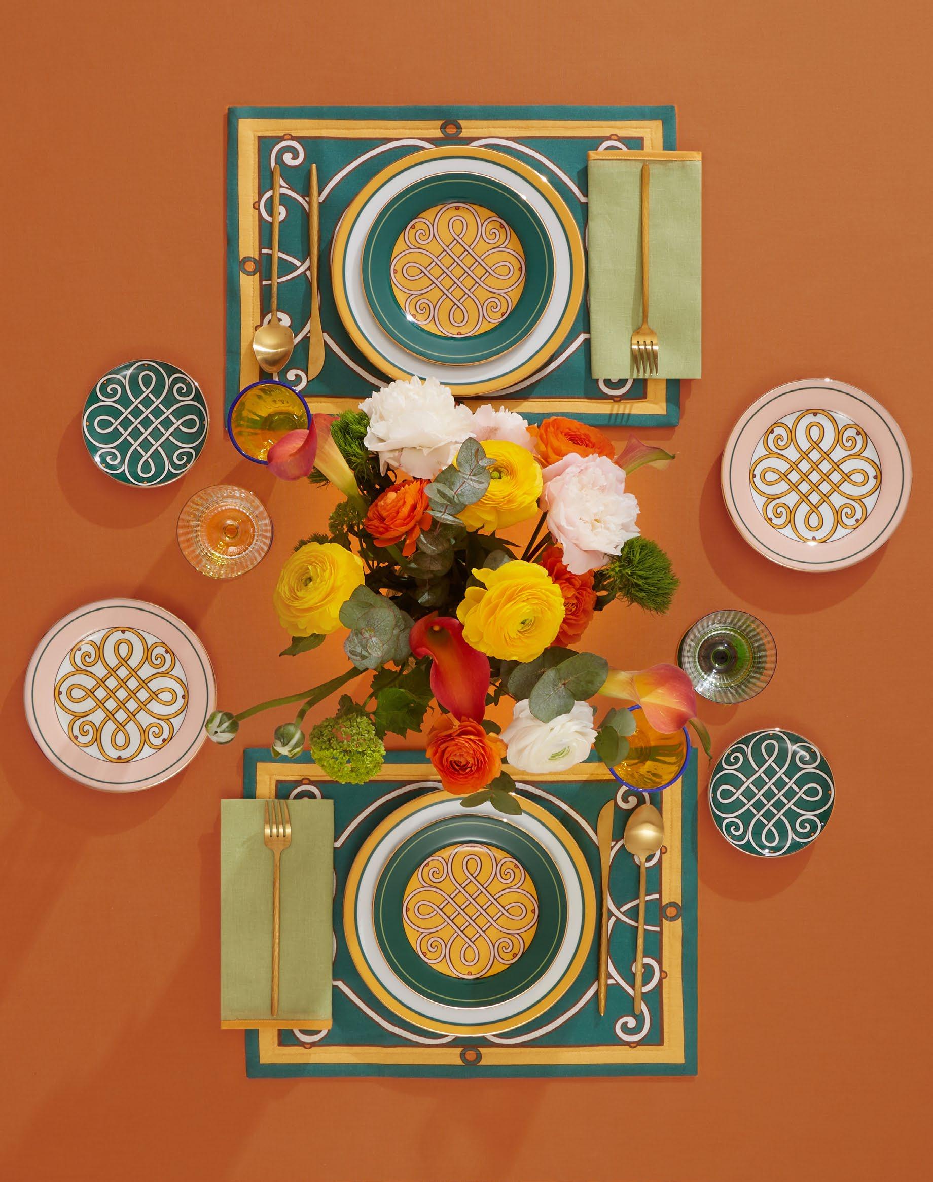 With each new design arrives a dose of DoubleJ wit, and the new “Ciao Cara” and “Ciao Babe” trays are the brand’s playful interpretation of the “Salve” mosaics found at the entrance of many a private palazzo (a very Italian version of the “welcome” mat). La DoubleJ’s best selling color-blocked linens make a powerful return across the Cloud Placemats, Table and Cocktail Napkins in Milan’s perennially chic palette – think lilac paired with forest green and saffron with sky blue. Tablecloths crafted just outside of Como arrive in the same powerful “Cortile” and “Girlanda” prints, along with Table Runners featuring a gorgeous geometric “Honeycomb Tiles” pattern serving as the perfect base upon which to build one’s celebration table. In spite of the tired (and utterly inaccurate) cliché that “Milano è brutta” compared to its iconic Southern counterparts, we love Milan for its raw edges, its austere facades concealing stunning secret spaces, and for the unexpected details that make up the city’s charismatic clash of beauty and brains. This collection is a spirit-soaring celebration of the design capital of the world our way of finally putting the city that birthed us, centerstage.