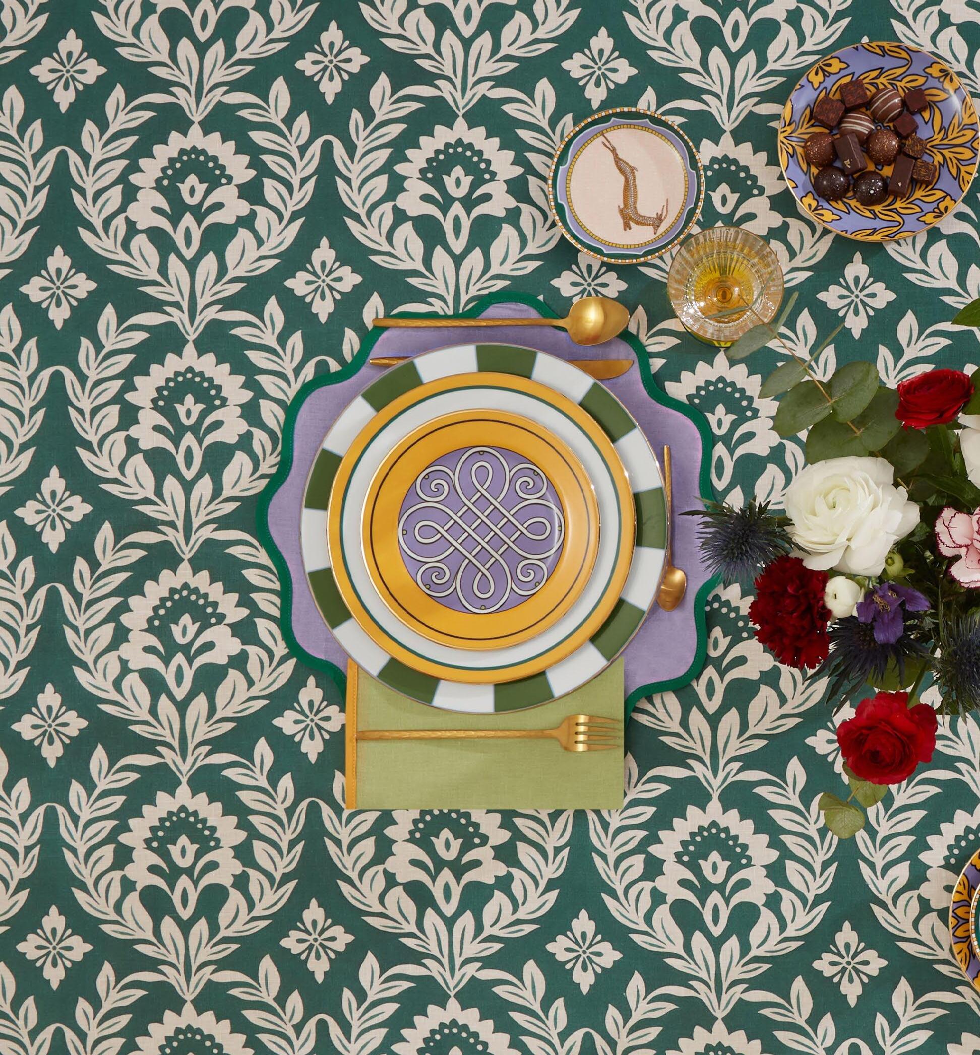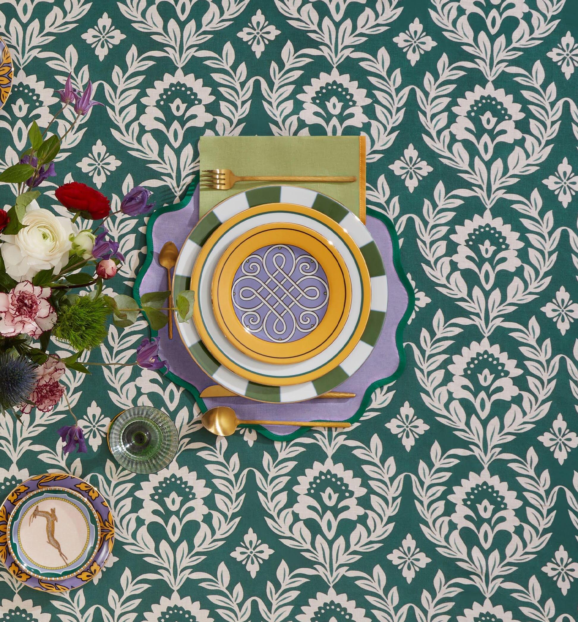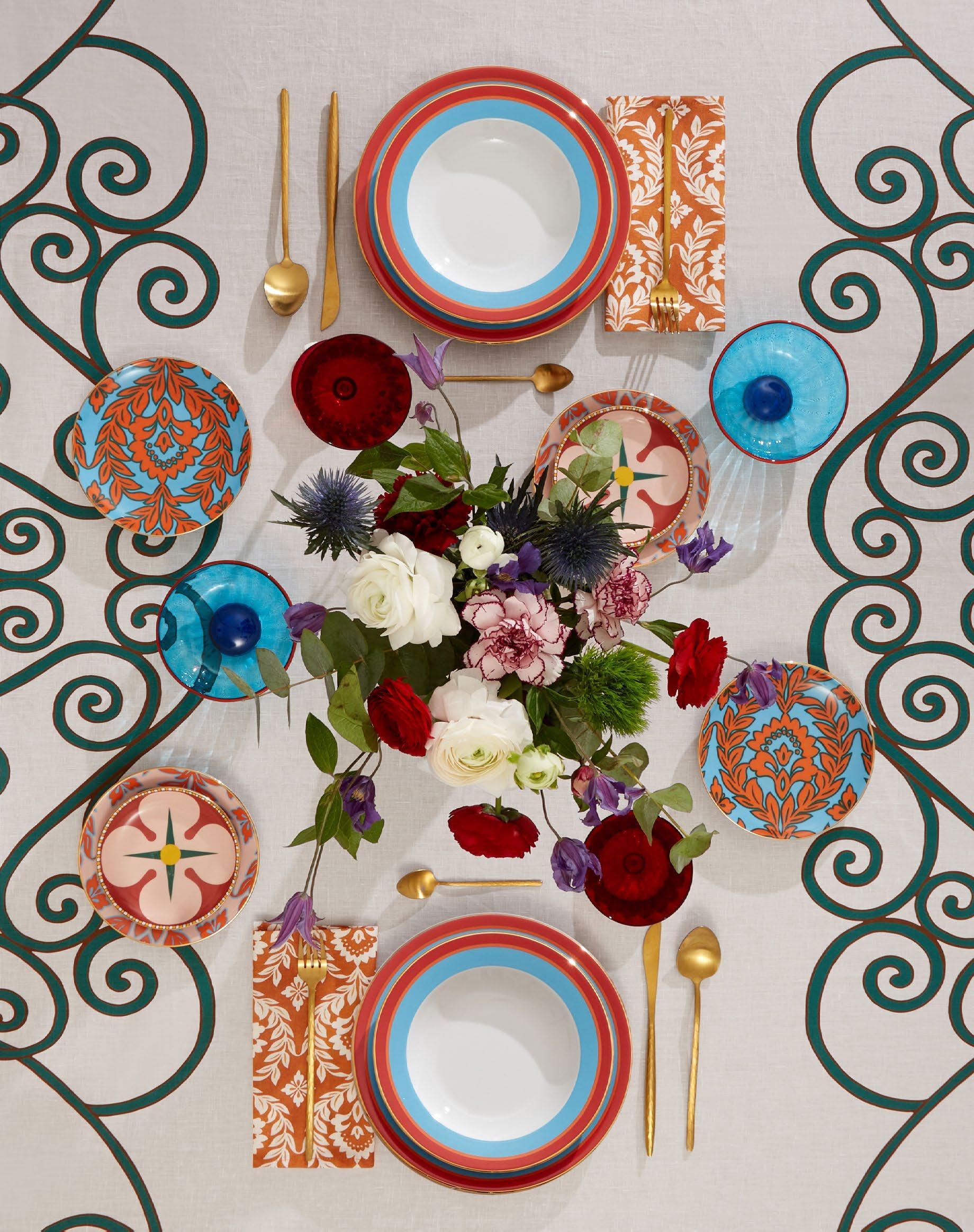 With each new design arrives a dose of DoubleJ wit, and the new “Ciao Cara” and “Ciao Babe” trays are the brand’s playful interpretation of the “Salve” mosaics found at the entrance of many a private palazzo (a very Italian version of the “welcome” mat). La DoubleJ’s best selling color-blocked linens make a powerful return across the Cloud Placemats, Table and Cocktail Napkins in Milan’s perennially chic palette – think lilac paired with forest green and saffron with sky blue. Tablecloths crafted just outside of Como arrive in the same powerful “Cortile” and “Girlanda” prints, along with Table Runners featuring a gorgeous geometric “Honeycomb Tiles” pattern serving as the perfect base upon which to build one’s celebration table. In spite of the tired (and utterly inaccurate) cliché that “Milano è brutta” compared to its iconic Southern counterparts, we love Milan for its raw edges, its austere facades concealing stunning secret spaces, and for the unexpected details that make up the city’s charismatic clash of beauty and brains. This collection is a spirit-soaring celebration of the design capital of the world our way of finally putting the city that birthed us, centerstage.