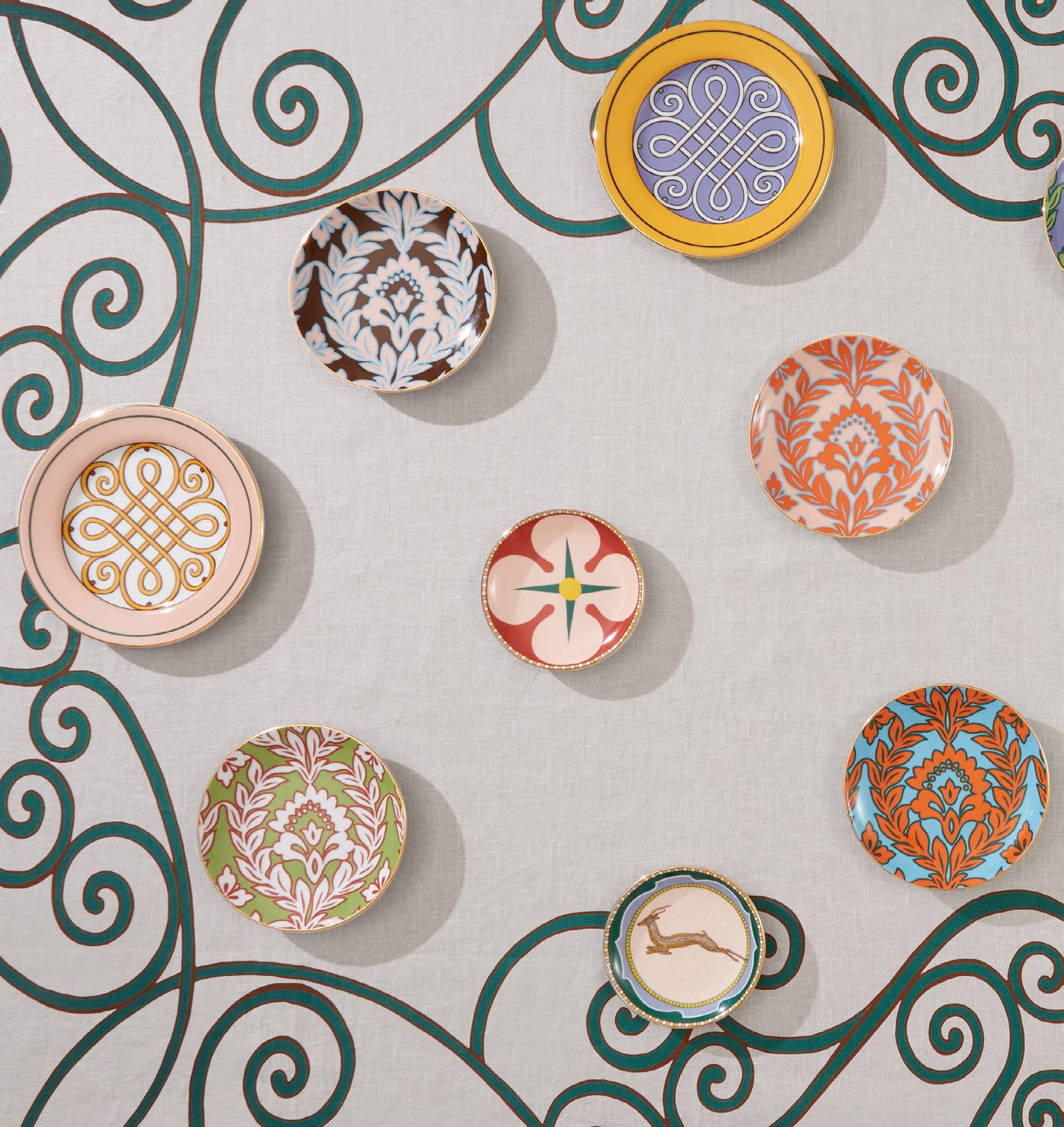 the floral imprint on the marble floor of Milan’s iconic Duomo; “Doe” was a design discovered under a staircase on a passeggiata through Corso Vittorio Emanuele. As always, these smaller pieces in the porcelain collection were made to be used any which way – as a jewelry tray, a petit-fours plate, a vessel for the obligatory glug of olive oil at each meal – no matter their purpose, they deliver just as much punch.
