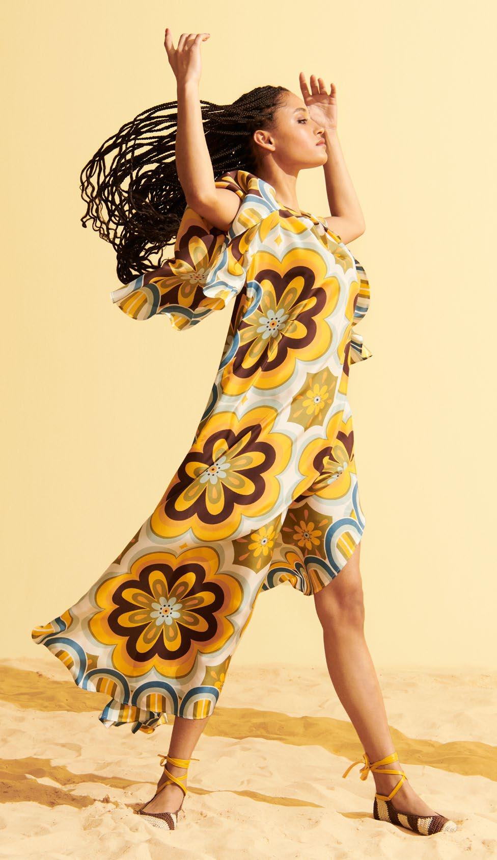 LOLLIPOP WRAP DRESS CREPE DE CHINE - BIG FLOWER ROSE PINUP HEADBAND TWILL - PINEAPPLE SUNFLOWER HAMMOCK SHIRT SUMMER POPELINE - BIG FLOWER ROSE PULL-UP SHORTS SUMMER POPELINE - BIG FLOWER ROSE MEDAL SANDAL TWILL - WATERMARBLE VENEZIANA FLATS TWILL - BIG FLOWER ROSE