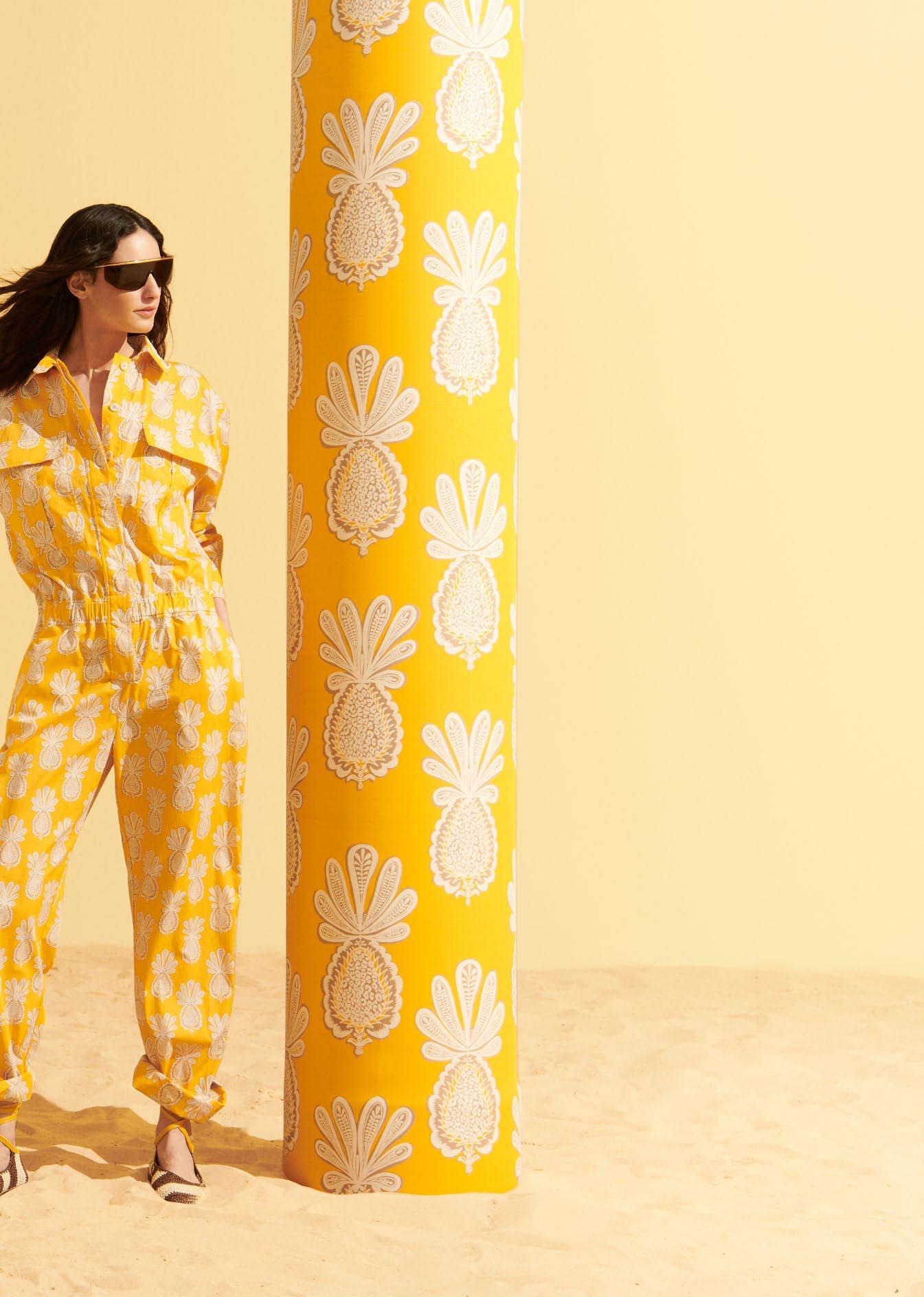 BIENNALE DRESS COTTON POLY - OCHER MEDAL SANDAL TWILL - WATERMARBLE AVIATOR JUMPSUIT SUMMER POPELINE PINEAPPLE SUNFLOWER
