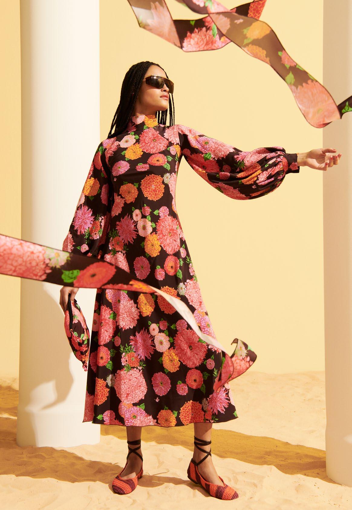 FAVOLOSO DRESS PLACÉE VISCOSE JACQUARD PLA RAINBOW PLACÉE MINI MAGNIFICO DRESS PLACÉE TWILL SILK PLA RAINBOW PLACÉE VENEZIANA FLATS TWILL BIG FLOWER ROSE