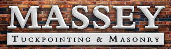 ReadouryearsofglowingGooglereviews,checkoutourgalleryofprojects,and readmoreaboutourqualityofworkandimpeccable,white-gloveservicefrom whenyoubookyour FREE estimateuntilandaftertheprojectcompletion. Call(314)200-9488orpointyourbrowserto masseytuckpointing.comtoscheduleyourchimney project,inspection,orcleaningestimate. Mentionthisadandreceive10%offanychimneyor tuckpointingserviceorproject—oneperhousehold/$300maximum
