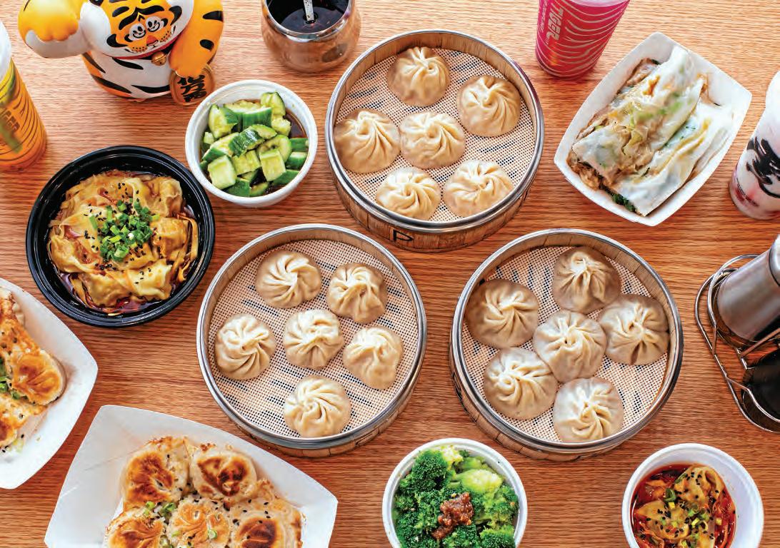 Zhai, Lai and their staff can be seen preparing the dumplings fresh from scratch daily, and guests can have the supple, savory pouches steamed or pan-fried for a pleasantly crispy edge. The menu features the same four soup dumpling options as the flagship Fenton shop: pork, chicken, beef, and shrimp and cheese. Pair them with popular sides such as garlicky golden broccoli, refreshing cucumber salad, and wontons in spicy chili oil. “As I learned from my family’s restaurants, I incorporated some Americanized flavors into my menu,” Zhai says.