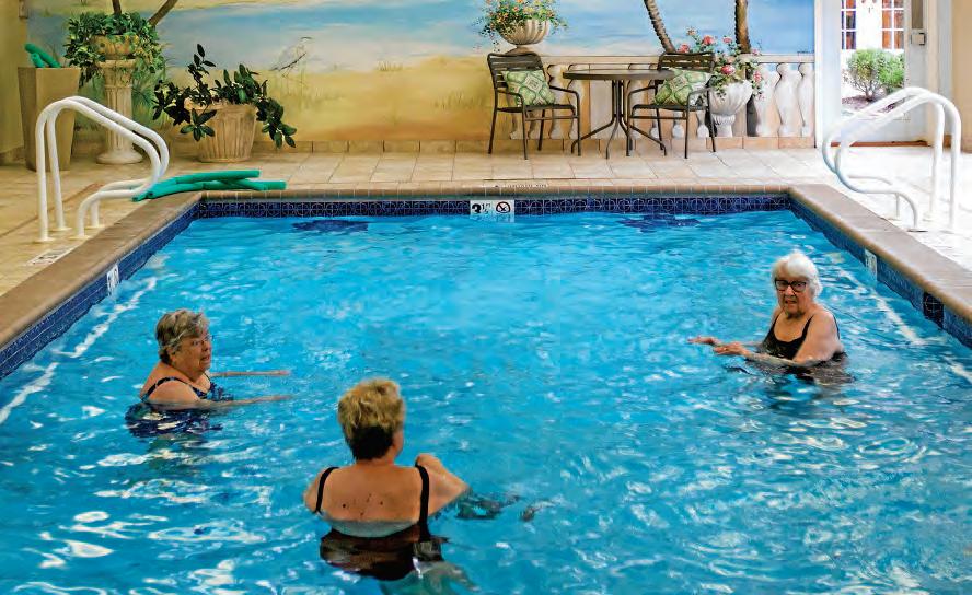 The fitness center at The Gatesworth is a state-of-the-art facility. The large group exercise area features Keiser fitness equipment, which is specially designed to meet the needs of seniors. It also includes a saltwater indoor lap pool, private locker rooms with showers, and an understated, soothing décor that creates a relaxing atmosphere.