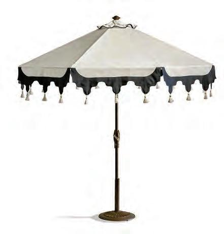 Accented with scallops and decorative tassels, the Skyros designer umbrella features a solution-dyed Sunbrella canopy made of premium, solution-dyed acrylic that stays beautiful year after year. It is available in an aluminum or teak frame. (frontgate.com)