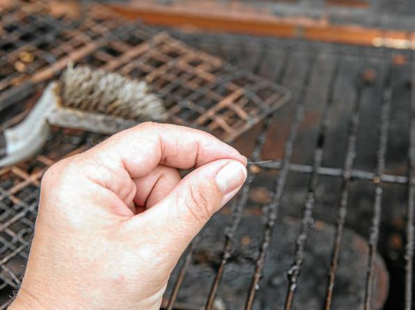 One hidden danger when grilling is the wire bristle brush used to clean the grill. In the past decade, accidental foreign body ingestions from grilled food have increased. Reports reveal more than 100 such injury cases per year led to hospitalizations. Wire bristles on brushes used to clean barbecue grills can become dislodged and remain on the cooking
