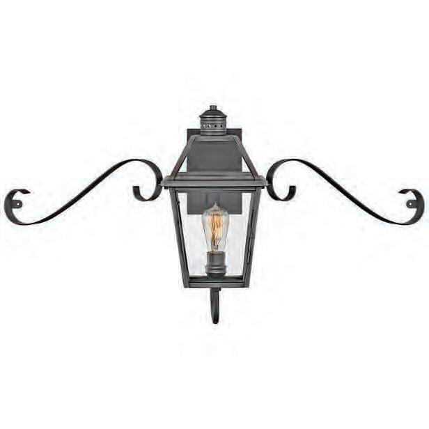 Hinkley lighting’s Nouvelle is a large wall-mount lantern, handcrafted with solid, blackened brass, that enhances the appearance of a range of façades. The slightly tapered, four-sided glass panels are paired with gracefully curved arms that reinforce the lantern’s simple charm. The generously sized light is 49.5 inches wide and 27 inches high. (wilsonlighting.com)