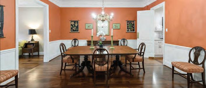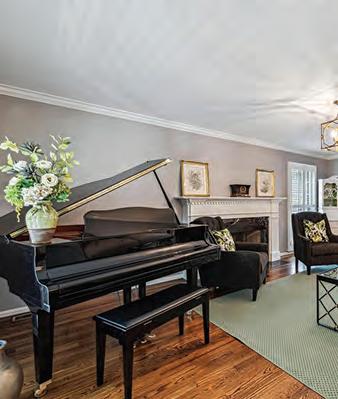 At the room’s center, in front of the beautiful built-ins crafted by Kenrose Cabinets, stands a stunning desk that merges French and Southern influences. The piece, meticulously designed by C&M Interiors and fabricated by Fiddle Creek Woodworking, is the attentiongrabber of the room.
