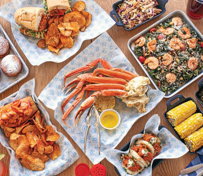up select signatures such as the Peacemaker oyster poorboy and buffalo crawfish steamed buns. Newer items include smoked pulled pork steamed buns, a Frisco melt, and a seasonal salad with shredded kale, roasted corn, onions, tomato relish, pickled shrimp, cotija, Creole vinaigrette and sunflower seeds. “In the fall, we hope to do a boil and raw bar station outside every once and a while,” Nashan adds.