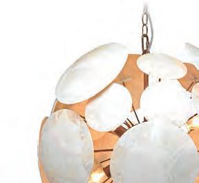 Made Goods’ Elba is a whimsical take on the vintage Sputnik chandelier. Large discs of luminous kabibe shell in varying dimensions create a dynamic, abstract look. Offering lighting that’s more atmospheric than functional, this chandelier sets a modern mood for dining rooms, foyers and more. (designanddetailstl.com)