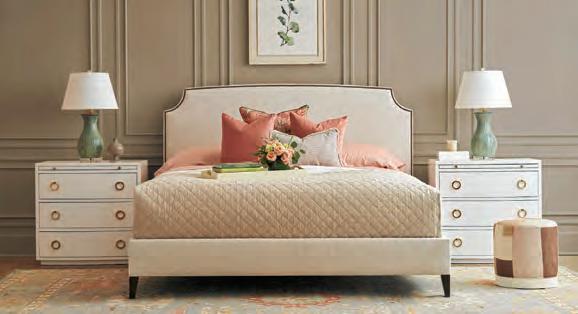 Wesley Hall’s clean-lined Aphrodite bed features a tailored headboard, available with fabric or leather, plus two different types of decorative nail head patterns. (designanddetailstl.com)