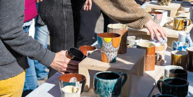 The2024MugMarket features 36 well-knownandlesser-known ceramicsartistsincludinguniversity professors,smallbusiness owners, hobbyistsandemergingartists. Many ofthe ceramistsselltheir workatlocalshops,art fairsand marketsthroughoutthe year, so customerswilloftenattendthe markettoshop work frommakers they alreadyknow andlove as well astodiscovernewfavoritecreators andstyles.