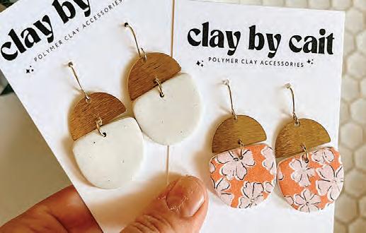 Foraprivateparty,thehostpicksthe locationandinvitesupto40gueststo celebratebirthdays,workplaceparties, bachelorettepartiesandgirls’nights. Burlingbringsthesamesuppliestoher ticketedworkshops,forwhichshepartners withlocalbusinessestohost.Inaddition, ClaybyCaithostspop-upbuild-your-own earringbarsatlocalshops,happyhours andvendorevents,whichareannouncedon socialmedia(atfacebook.com/claybycait and@clay_madebycaitonInstagram).