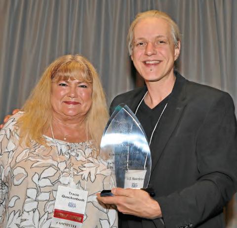 “Lately,I’vebeenexploringwaystotie mybackgroundinjewelrydesignwithmy blacksmithingskills,especiallythroughmy handmadeknives.I’mparticularlyfocusedon howmaterialsandtechniquesoverlap,from handledesigntosurfacetreatmentsonsteel. Rightnow,I’minGeorgiatakingamasterclass withBetteBarnettattheWilliamHolland SchoolofLapidary,learningtofusegoldand othermetalalloystosteel.I’mhopingtohave examplepiecesreadyforanupcomingshow–theMidwestMetalsmithsArt&JewelryShowon Oct.17to18attheFirstCongregationalChurch ofWebsterGroves.” kimstahldesigns.com
