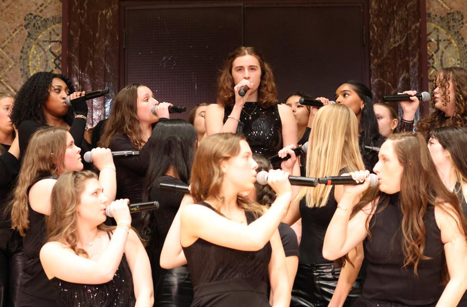 Viva Voce performs the second song of their set, “Doomsday” by Lizzy McAlpine, with Norah Murphy (12) singing the solo. They placed fourth overall at the International Championship of High School A Cappella (ICHSA) Feb. 7 at the 560 Music Center, with Murphy winning Outstanding Arrangement for the set.