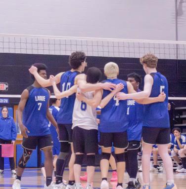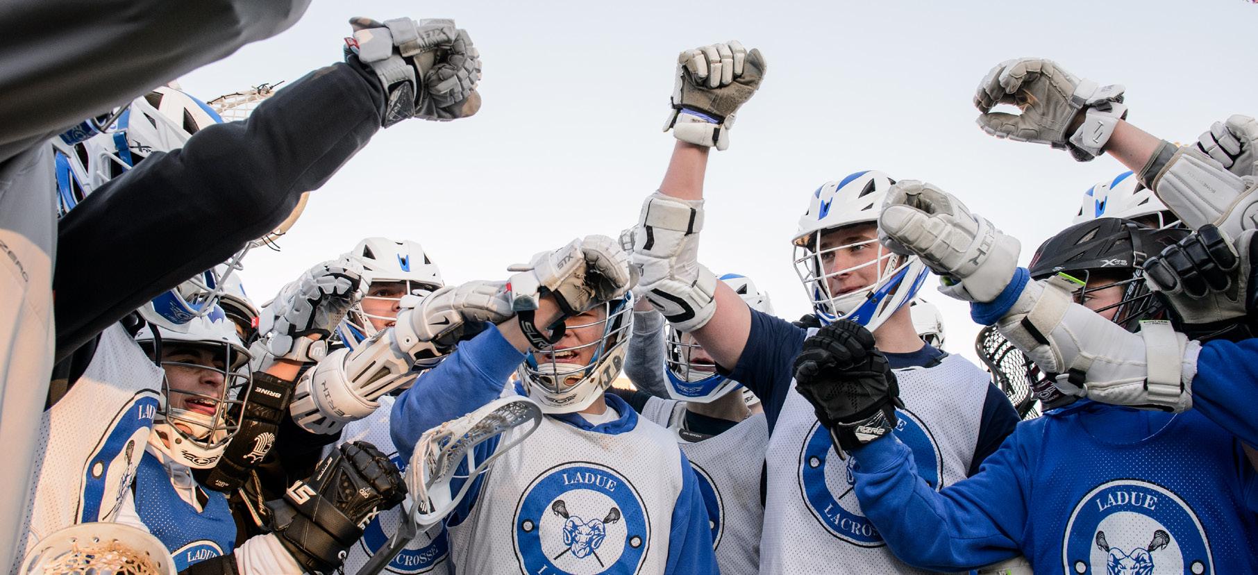 LEFT: The boys lacrosse team huddles at Ladue High School’s athletic stadium Feb. 23. Liam Reeves has been playing lacrosse since fifth grade.