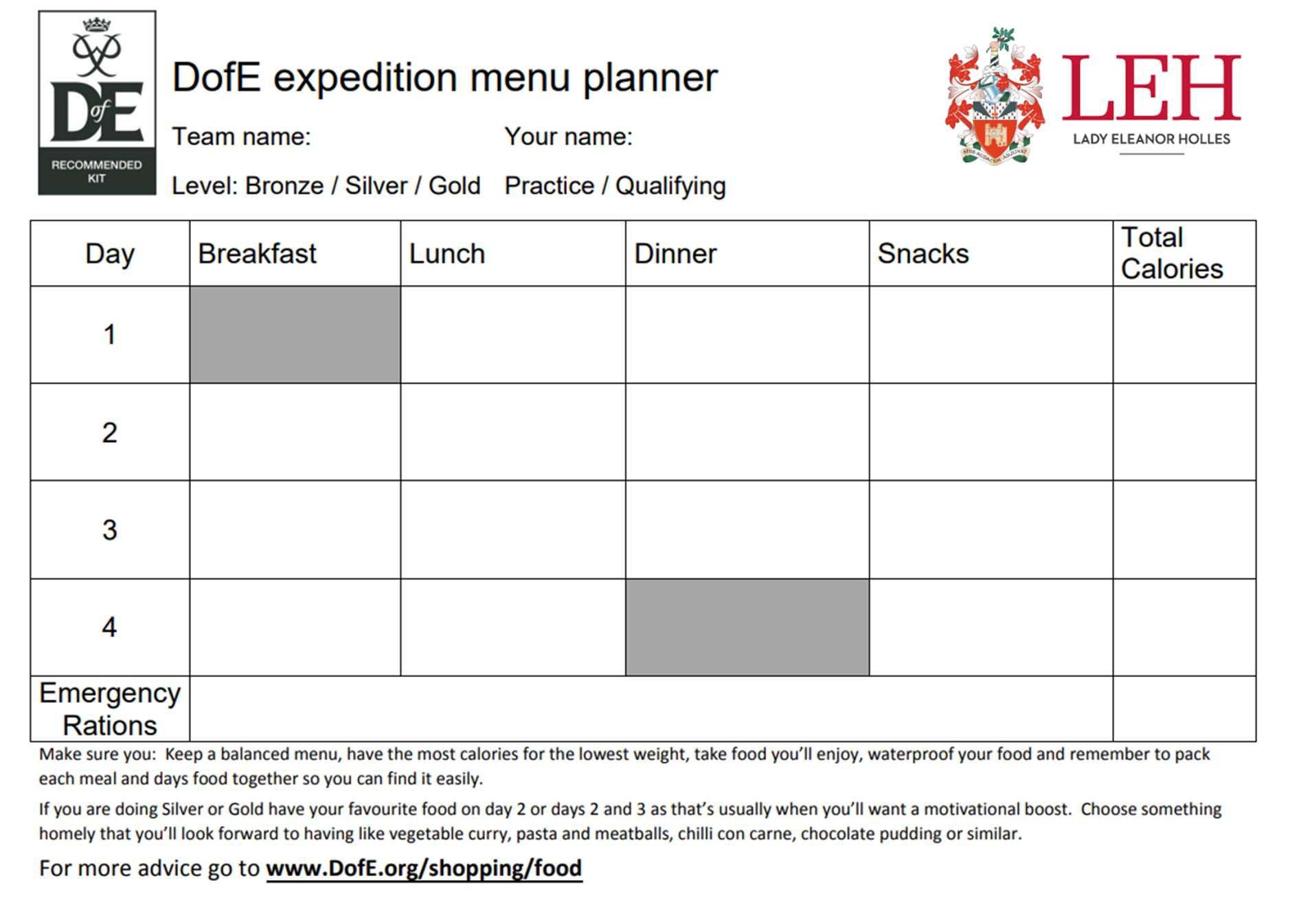 https://www.dofehero.com/blog/complete-guide-to-food-on-dofe https://www.theordinaryadventurer.com/advice/dofe-food-ideas/ https://www.dofe.org/shopping/expedition-kit/expedition-food/