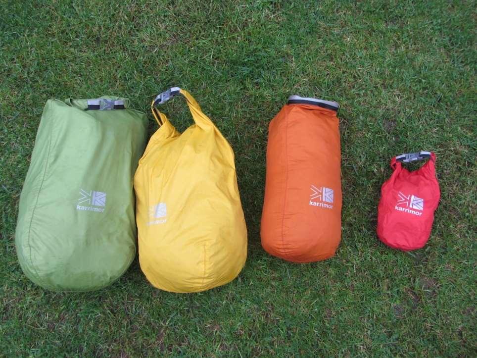 Usevarioussizesofdrybagstokeepyourkitdry. ThesefromSportsDirectcostbetween£4and£12dependingonsize. Don’twanttobuydrybagsbutyoucangettoasupermarket?Youcan usetoughbinbagsandfoodclipsinstead.Justmakesureyouhave squeezedorrolledalltheairout!