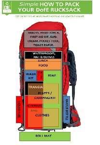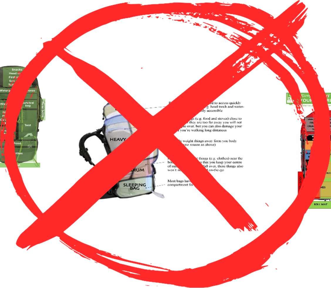 Theonlyitemallowedontheoutsideofyourrucksackisafoamsleeping mat.Thismustbewaterproofedbygoinginarubblesack.
