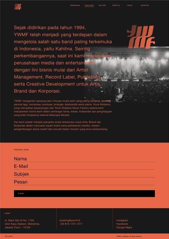 YWMF derives its name from Yovie Widianto, a renowned music virutoso encompassing roles as a songwriter, composer, producer, arranger, keyboardist, and pianist. The abbrevation stands for Yovie Widianto Music Factory. YWMF aimed to rebrand itself as more than just an artist management entity, but expanding its services to include music publishing, a record label, and creative production.