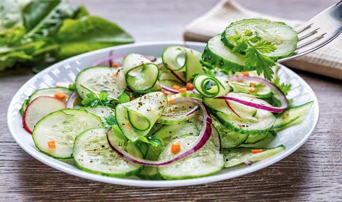 3. Una buena ensalada de pepino: rebane el pepino en rebanadas delgadas. Agregue cebolla morada y sal y deje reposando de 20 a 60 minutos. Enjuague, seque y aderece con vinagre de sidra mezclada con mostaza Dijon. No requiere aceite. Si el pepino es muy viejo, primero pélelo y quite
