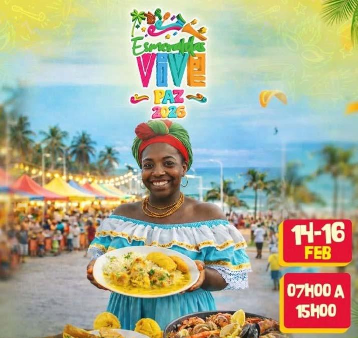 La Alcaldía de Esmeraldas presentó la agenda ‘Vive Paz 2026’ para Carnaval. Del 14 al 16 de febrero habrá conciertos, ferias y deporte en Playa Las Palmas. 3