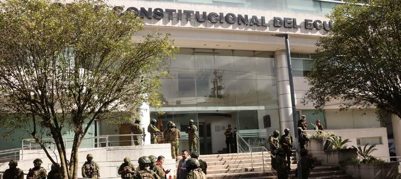 INSTITUCIÓN. Sede la Corte Constitucional en Quito, durante la marcha del Gobierno del 12 de agosto de 2025. (Foto: API).