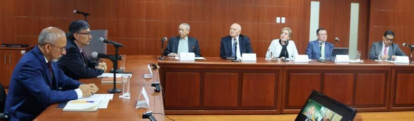 REUNIÓN. El 12 de febrero de 2026, Marco Rodríguez impulsó un Consejo Consultivo. Al fondo los expresidentes de la Corte Suprema y Corte Nacional (de izquierda a derecha): Gustavo Medina, Armando Bermeo, Paulina Aguirre, Iván Saquicela y José Suing. (Foto: CNJ)