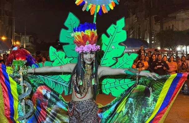 raldeña. Aunque los estudiantes tuvieron poco tiempo de preparación, su coreografía transmitió un mensaje de unidad y orgullo por las raíces locales. Además, grupos folclóricos y artistas independientes mostraron bailes tradicionales, como la marimba esmeraldeña y representaciones de la playa de muertos, una festividad con gran significado en la región. Los trajes típicos, la música en vivo y la creatividad de los participantes convirtieron el pregón en un verdadero espectáculo visual.