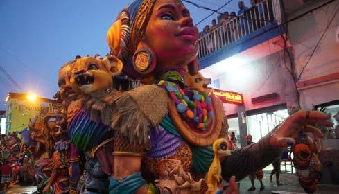 creadores y ejecutantes. Esta delegación exhibió componentes de su celebración tradicional, la cual ostenta el reconocimiento de patrimonio cultural. El despliegue logístico y artístico comprendió la movilización de dos carrozas ornamentadas con motivos folclóricos, un ensamble coreográfico, una murga, una comparsa y cuatro disfraces individuales de exhibición. La agenda oficial tuvo su punto de partida la tarde