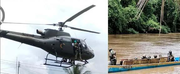 territorio ecuatoriano. Durante el registro del área ocupada por los sospechosos, el personal militar localizó y decomisó diverso armamento y equipo de características tácticas.