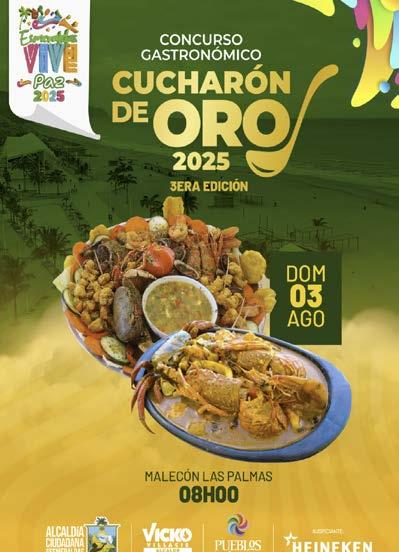 Además, destacan eventos como el Pregón Cultural (1 de agosto) y el Desfile CívicoMilitar (5 de agosto), que conmemora los 205 años de independencia de Esmeraldas.