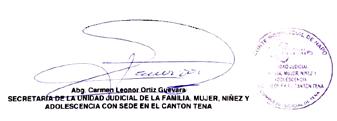 R. DEL E. UNIDAD JUDICIAL DE LA FAMILIA, MUJER, NIÑEZ Y ADOLESCENCIA CON SEDE EN EL CANTON TENA-PROVINCIA DE NAPO NAPO-TENA
